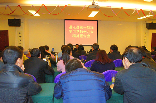 潘刚以“走向世界舞台中心的宣言书”为题对党的十九大精神作了深入细致的宣讲。驻通民主党派成员、无党派人士,党外知识分子、新的社会阶层人士、民族宗教界人士,部分乡镇统战委员、村统战联络员;统战成员单位干部职工,共计60余人参加会议。 |